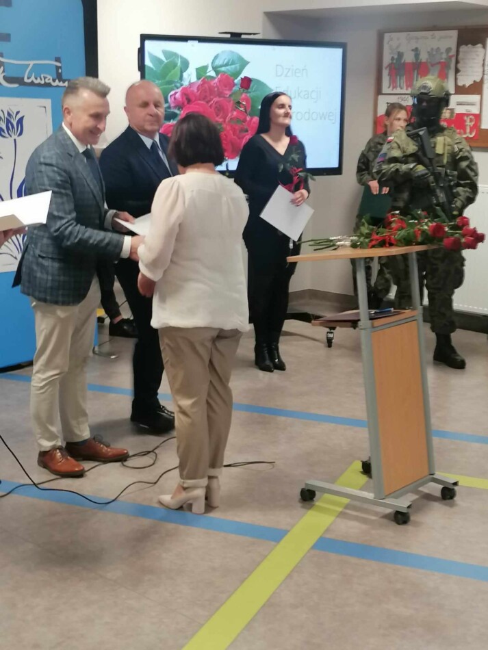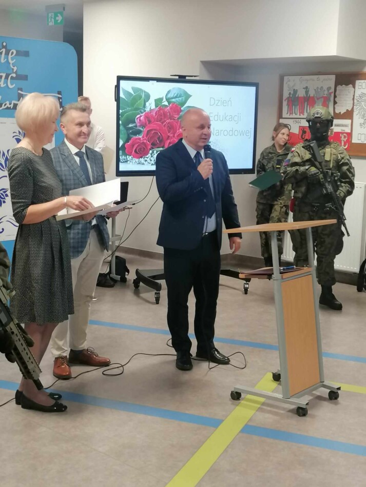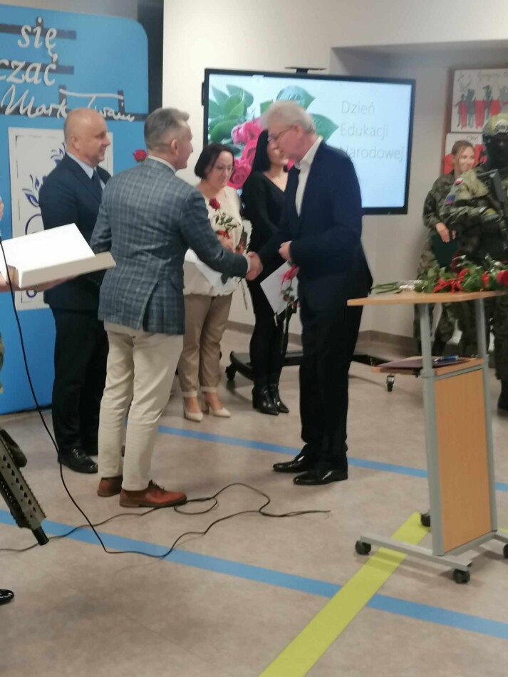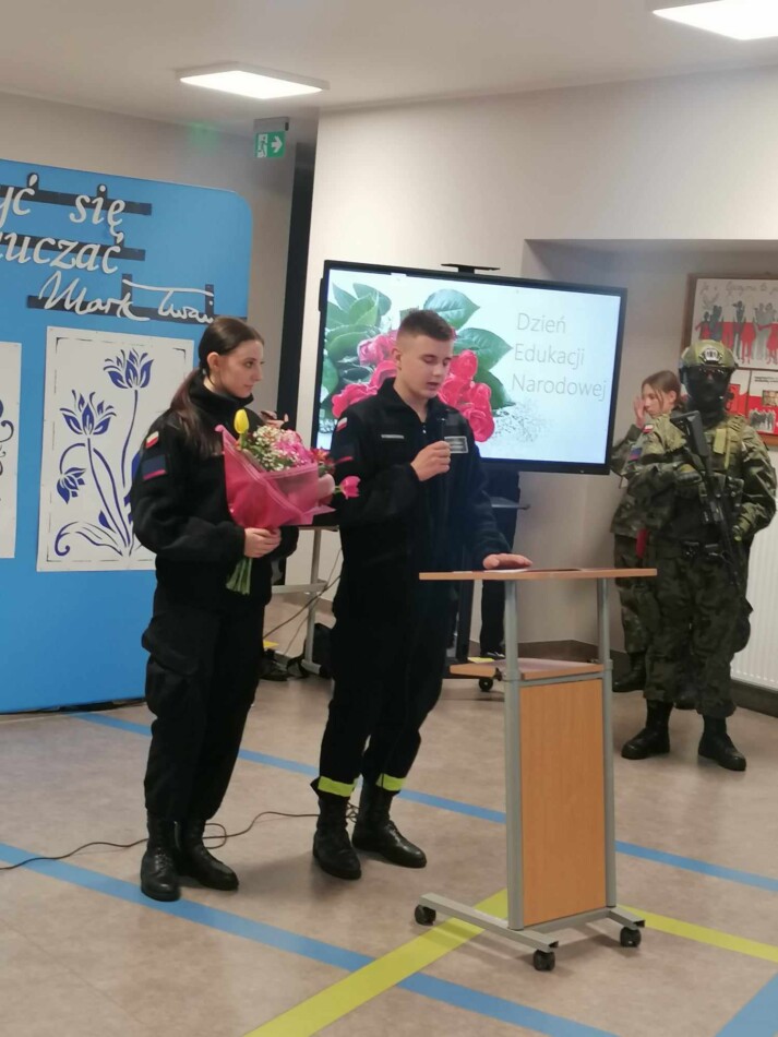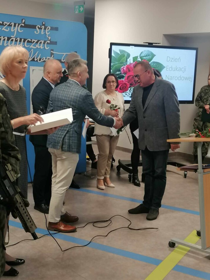 18 października w szkole był dniem uroczystym. Z okazji DEN uczniowie kadeci wszystkich klas rywalizowali w sztafetowym biegu terenowym o puchar przechodni dyrektora szkoły. Rywalizację wygrała drużyna klasy Ia. Serdecznie gratulujemy. Następnie na holu szkoły odbyła się uroczysta Akademia. Była okazją do życzeń i nagrodzenia nauczycieli i pracowników szkoły. Akademię zaszczycili swoją obecnością wyjątkowi goście: Prezes Zarządu BZDZ z Bydgoszczy, Wicestarosta Powiatu Ciechanowskiego, Dyrektorzy: PCKiSz, Powiatowego Urzędu Pracy, Powiatowego Centrum Usług Wspólnych, Komendanci Powiatowi Straży Pożarnej, Policji, przedstawiciel Wojsk Obrony Terytorialnej.