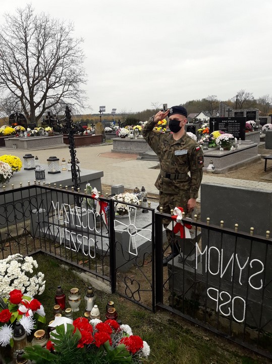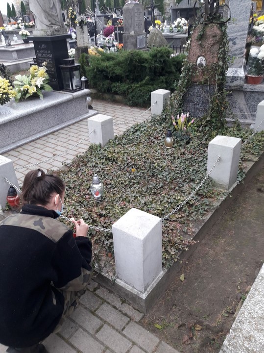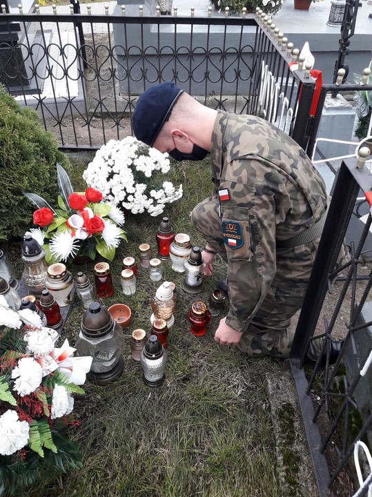 3. Damian Śmigrodzki (4B) odwiedził kwaterę żołnierzy 1920r.  na cmentarzu w Sochocinie;