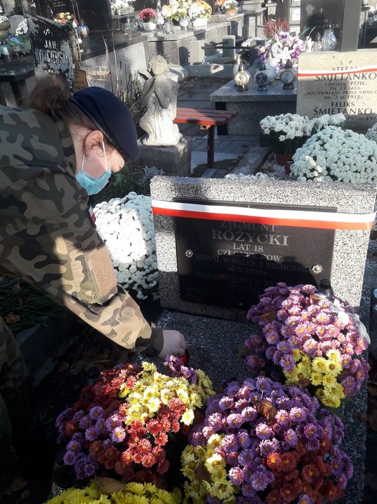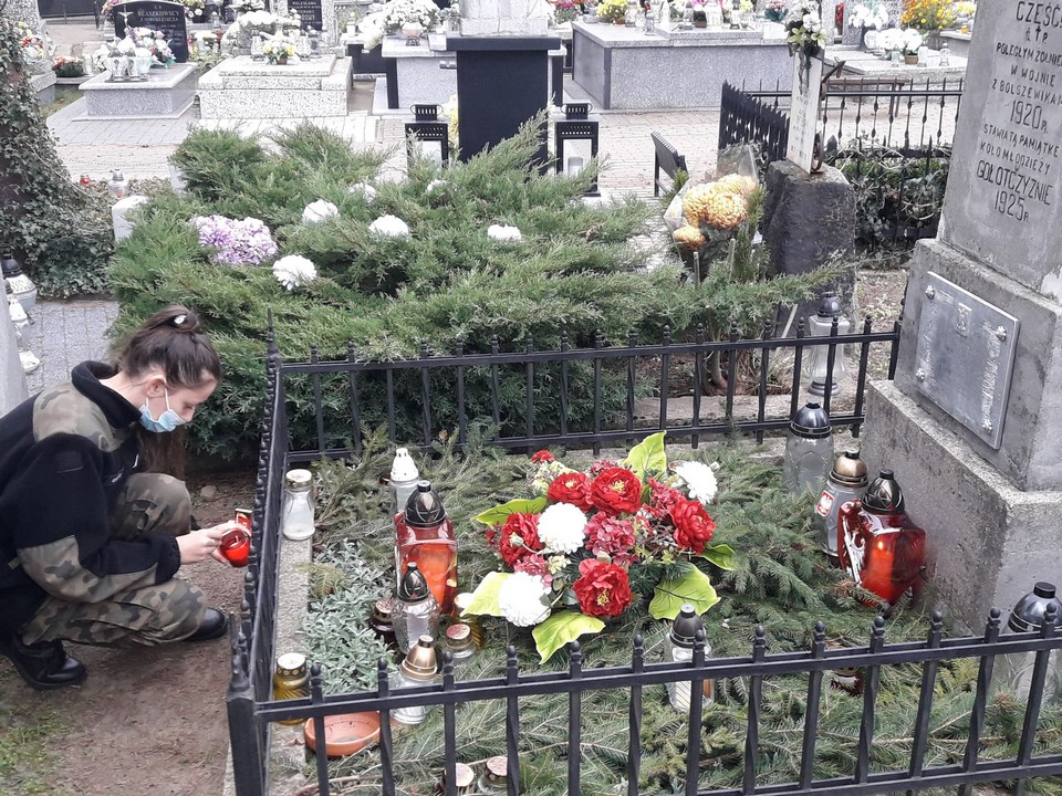 9. W akcji udział wzięła również nasza Pani dyrektor Bogumiła Wejs zapalając znicze na grobach żołnierzy 1920r. oraz osób pomordowanych przez niemieckich okupantów.