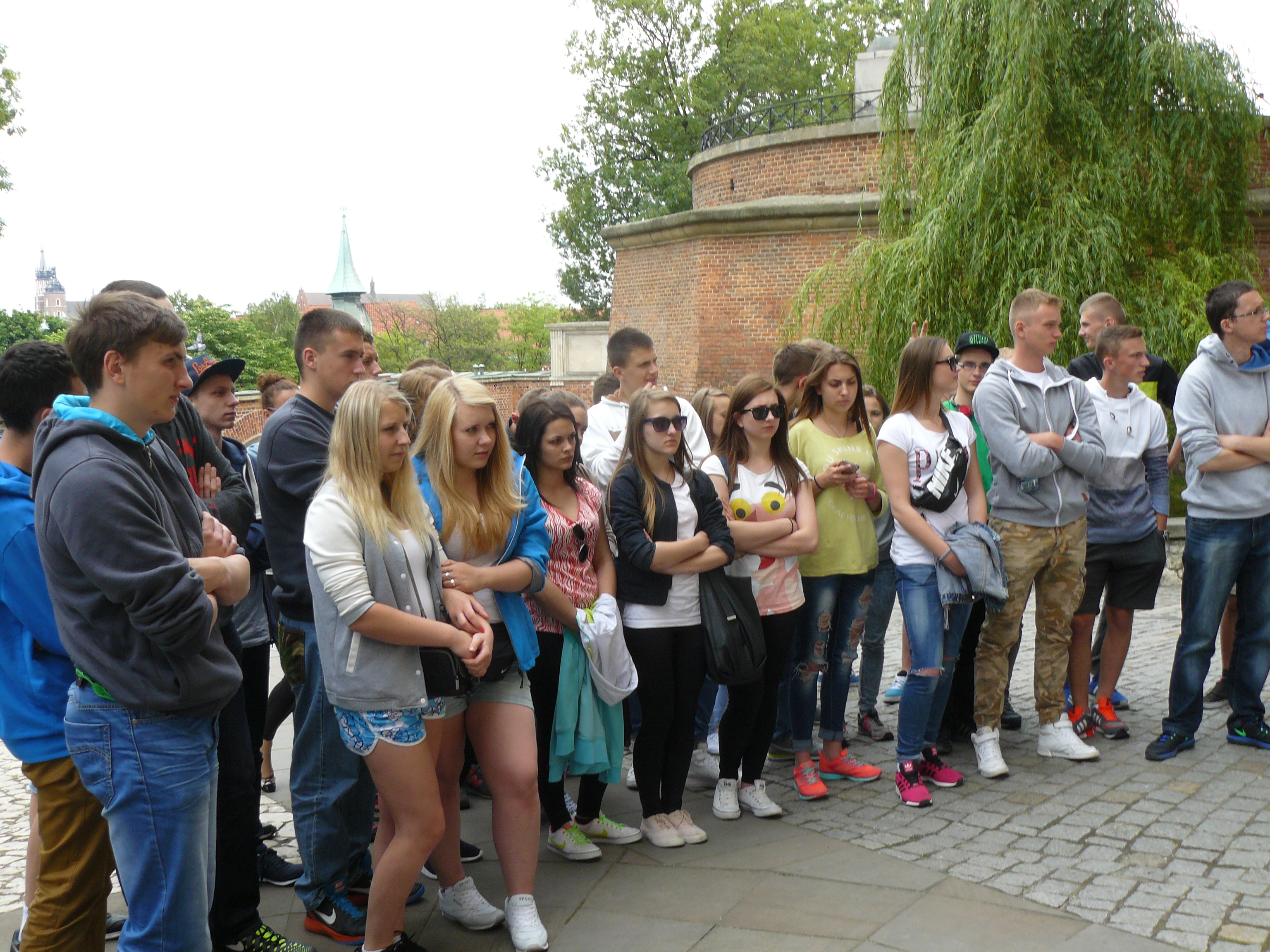 Pierwszego dnia (18.06.15 r.) pojechaliśmy na wycieczkę w góry. O godzinie 6:00 odbyła się zbiórka pod szkołą i wyjazd, a  o godz.  13:00 już  zawitaliśmy w Krakowie. Zwiedzaliśmy Wawel w tym Katedrę, Groby Królewskie, na starówce Kościół Mariacki i Sukiennice. Wieczorem zostaliśmy zakwaterowani w pensjonacie w Zakopanem i odbyła się dyskoteka.