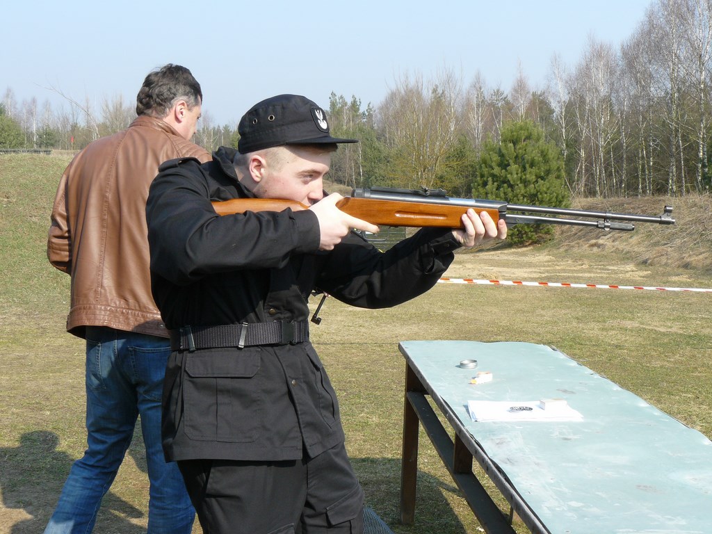 Na miejscu wszyscy już na nas czekali. Instruktorzy objaśnili zasady panujące na strzelnicy i podzieleni nas na grupy. Strzelaliśmy z kabekaesu i wiatrówek.
