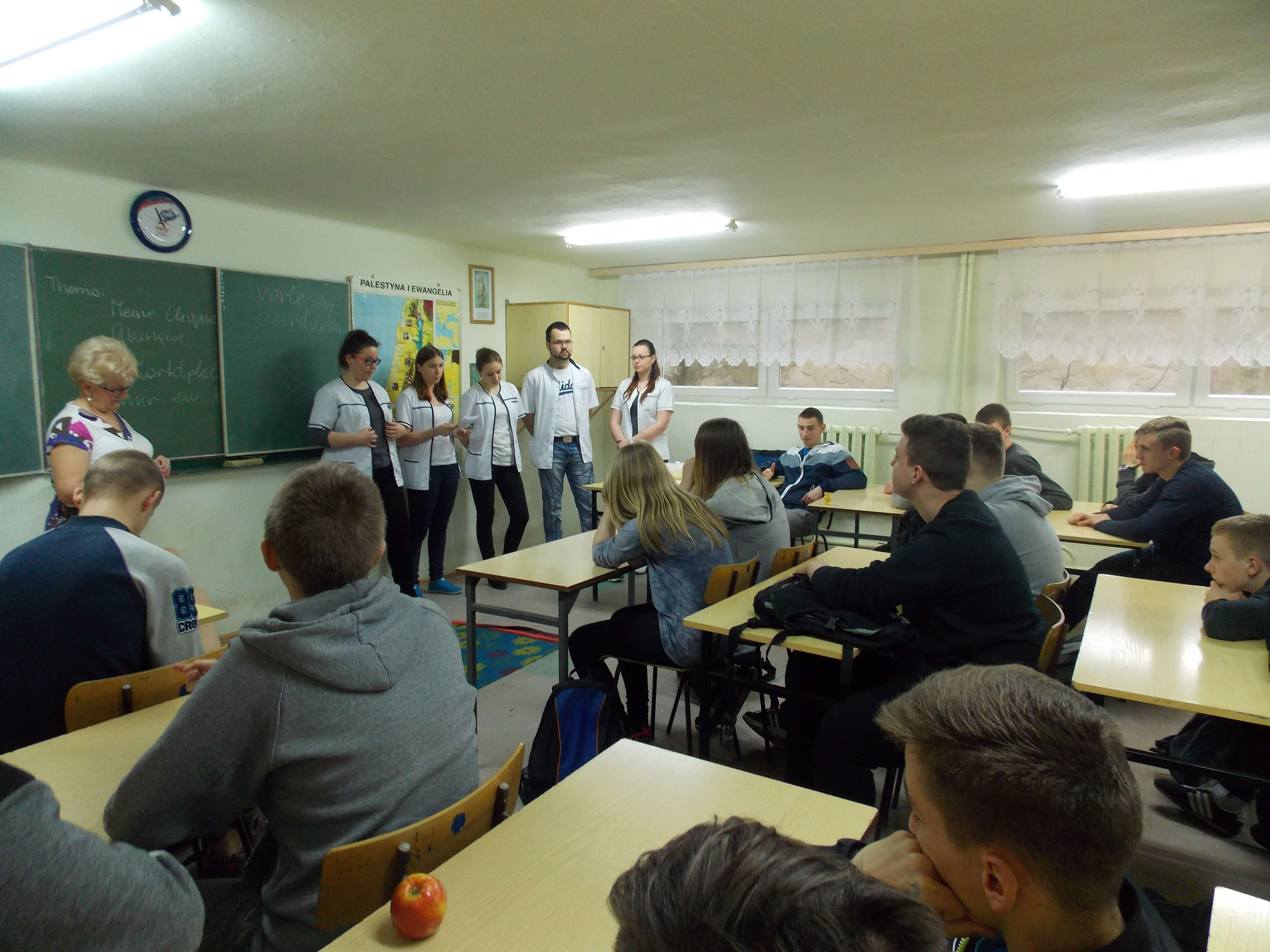 Zajęcia przeprowadzone były przez pielęgniarkę szkolną p. Aldonę Justat oraz studentów III r. PWSZ w Ciechanowie kierunek pielęgniarstwo.