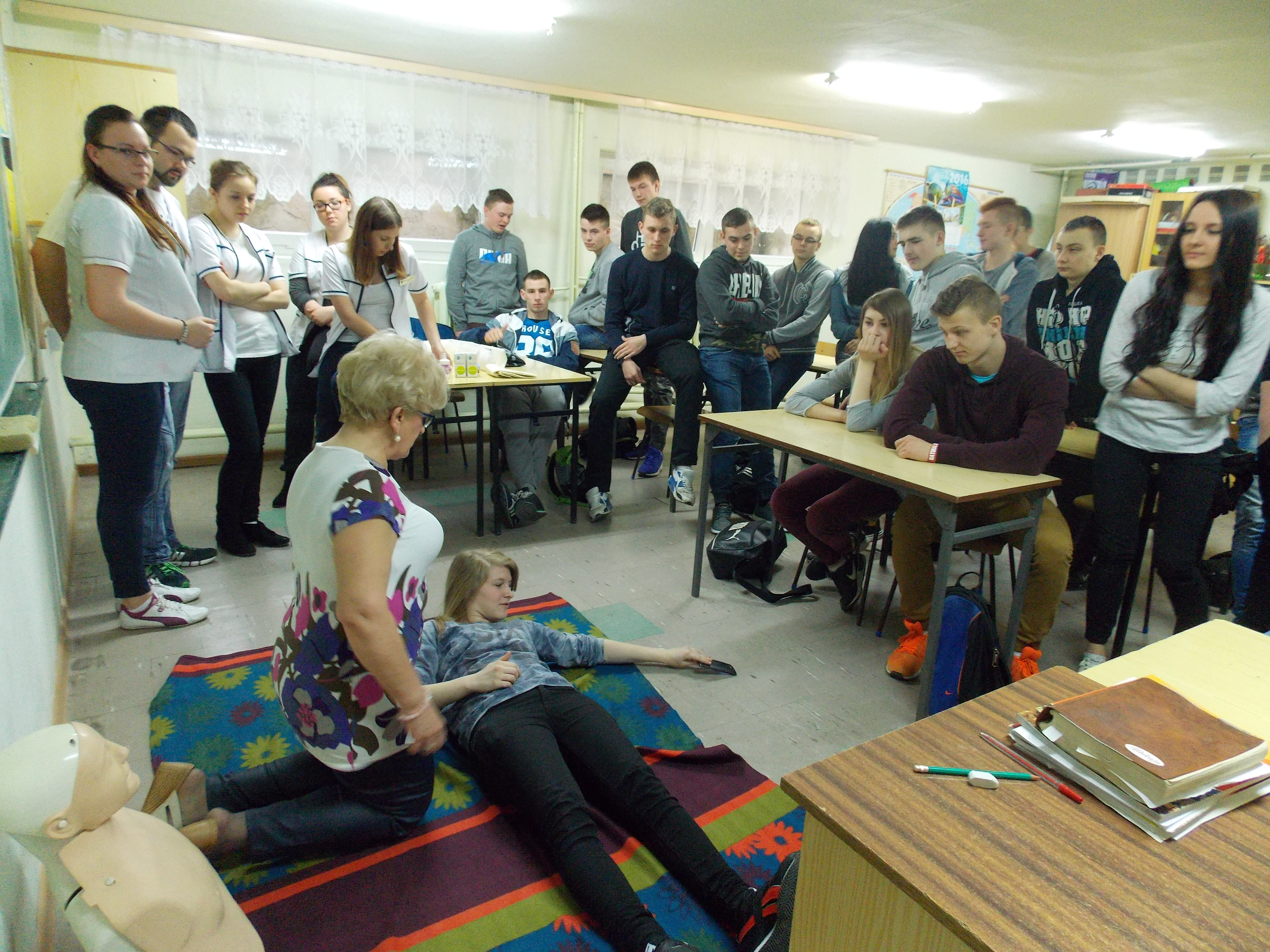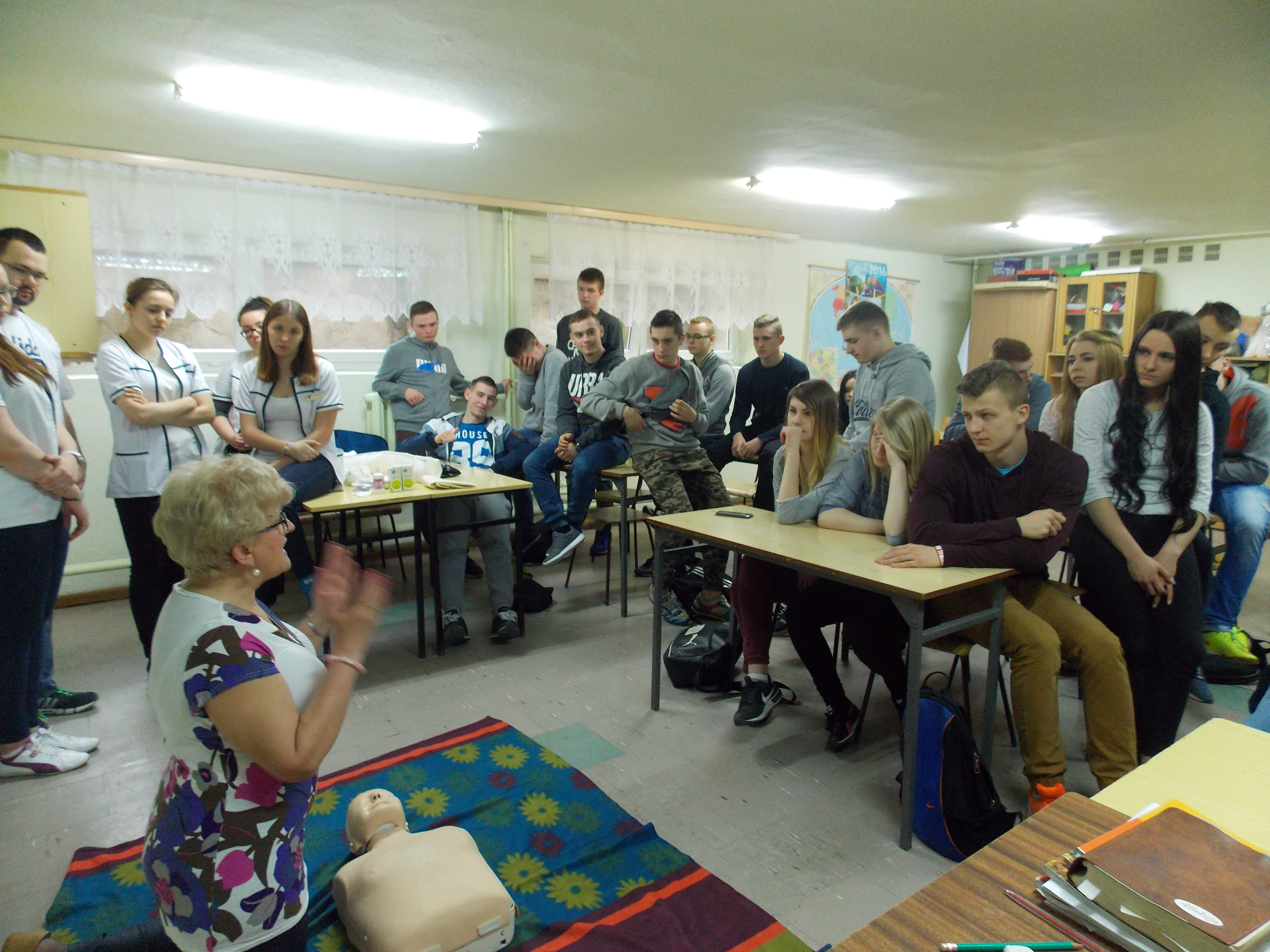 Zajęcia odbyły się w formie wykładów, pokazów oraz ćwiczeń. Były one wspaniałą zabawą pozwalającą uczniom poznać techniki udzielania I pomocy w różnych sytuacjach zagrożenia zdrowia i życia.