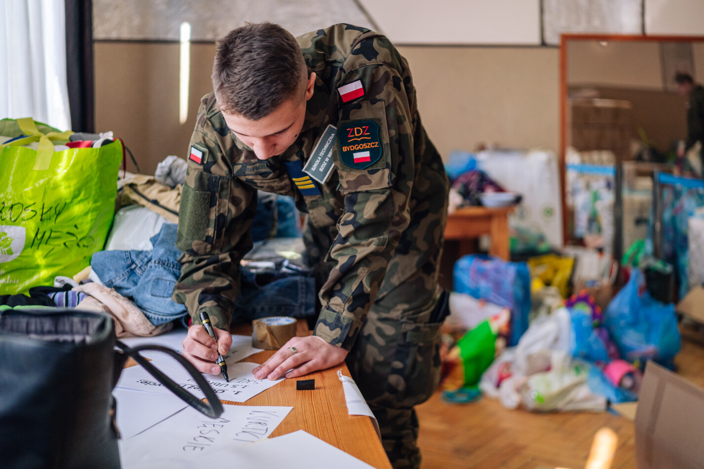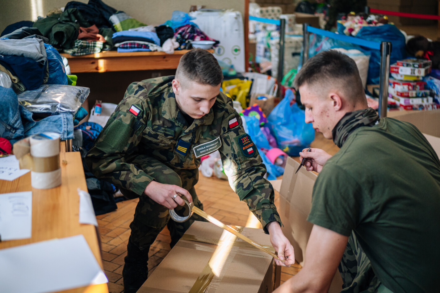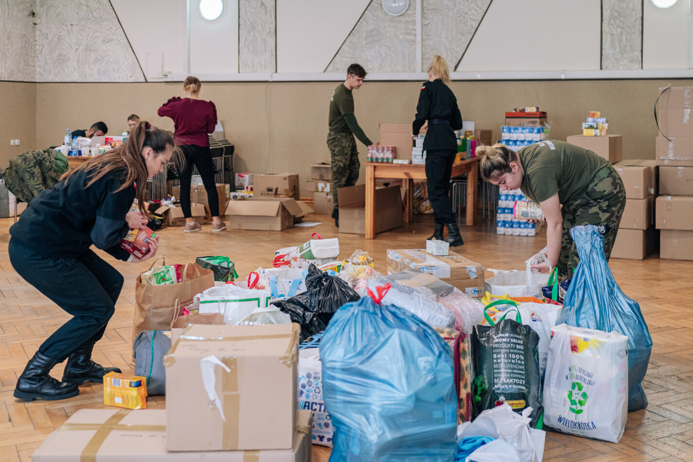 02 marca czternastoosobowa grupa uczniów z klas: IIIa, IIIb i IVa Technikum Mundurowego w Mroczy udała się do siedziby Sztabu kryzysowego w Nakle nad Notecią w celu wsparcia działań na rzecz Ukrainy. Przez sześć godzin przyszli logistycy pomagali w segregowaniu i pakowaniu darów zgromadzonych w akcji pomocy uchodźcom z objętej wojną Ukrainy. Grupą dowodził przewodniczący TM – Emilian Kwiatkowski. Dzisiejszy wyjazd nie był jednorazową inicjatywą mundurowych z Mroczy. Uczniowie będą wspomagać nakielski sztab również w weekendy, gdy tylko pojawi się taka potrzeba.