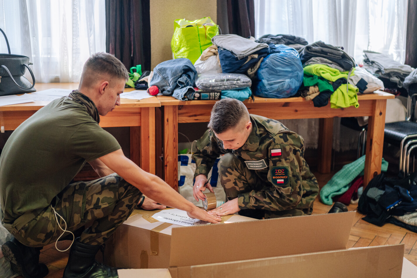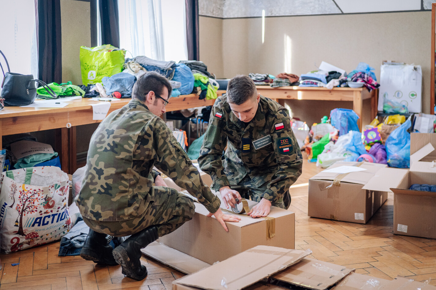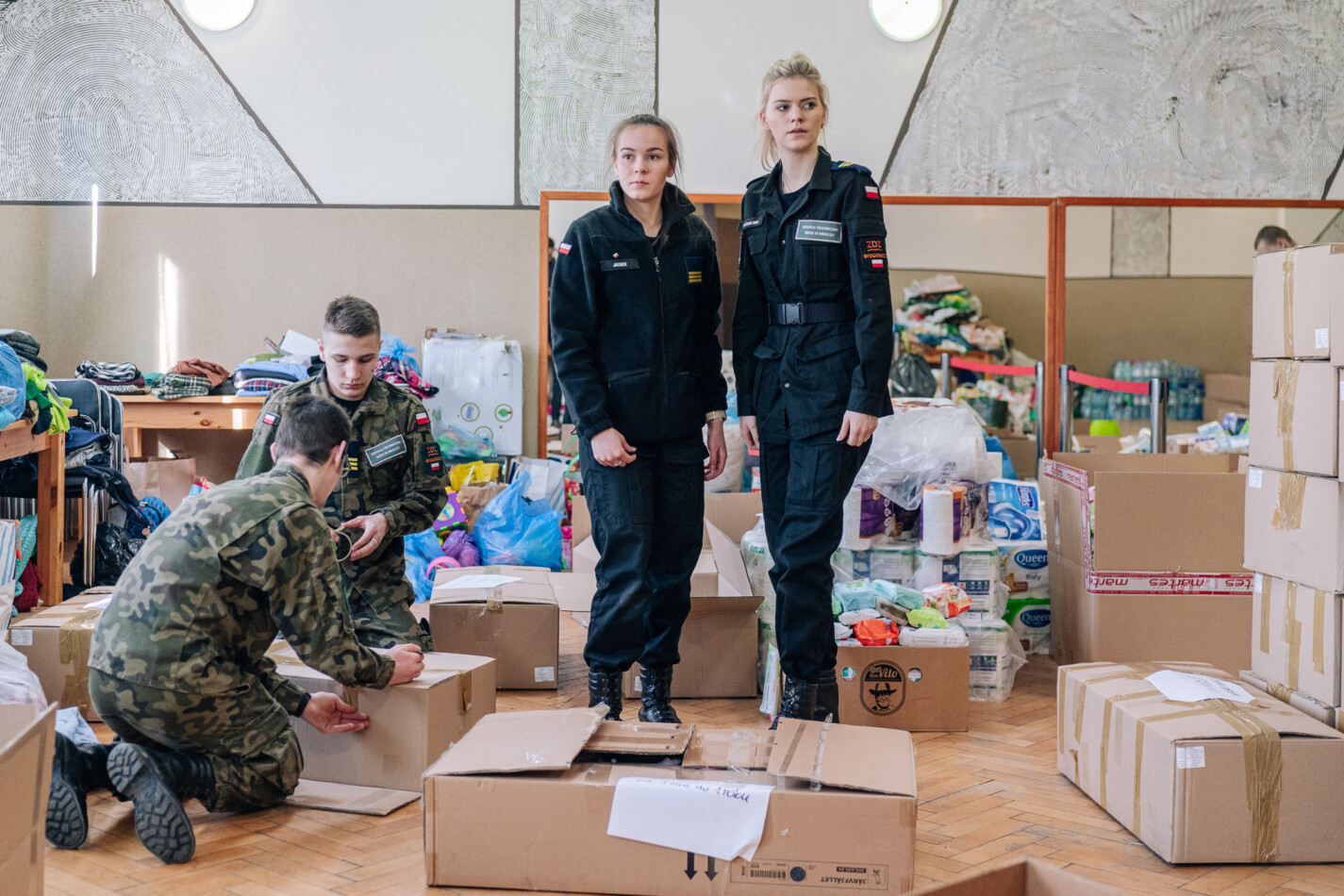 02 marca czternastoosobowa grupa uczniów z klas: IIIa, IIIb i IVa Technikum Mundurowego w Mroczy udała się do siedziby Sztabu kryzysowego w Nakle nad Notecią w celu wsparcia działań na rzecz Ukrainy. Przez sześć godzin przyszli logistycy pomagali w segregowaniu i pakowaniu darów zgromadzonych w akcji pomocy uchodźcom z objętej wojną Ukrainy. Grupą dowodził przewodniczący TM – Emilian Kwiatkowski. Dzisiejszy wyjazd nie był jednorazową inicjatywą mundurowych z Mroczy. Uczniowie będą wspomagać nakielski sztab również w weekendy, gdy tylko pojawi się taka potrzeba.