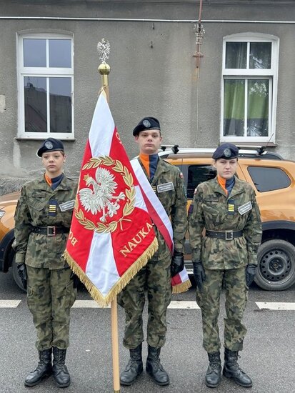 Na uroczystości nie zabrakło naszych uczniów, którzy pełnili wartę honorową i wystawili poczet sztandarowy, godnie reprezentując szkołę podczas oficjalnych momentów święta.