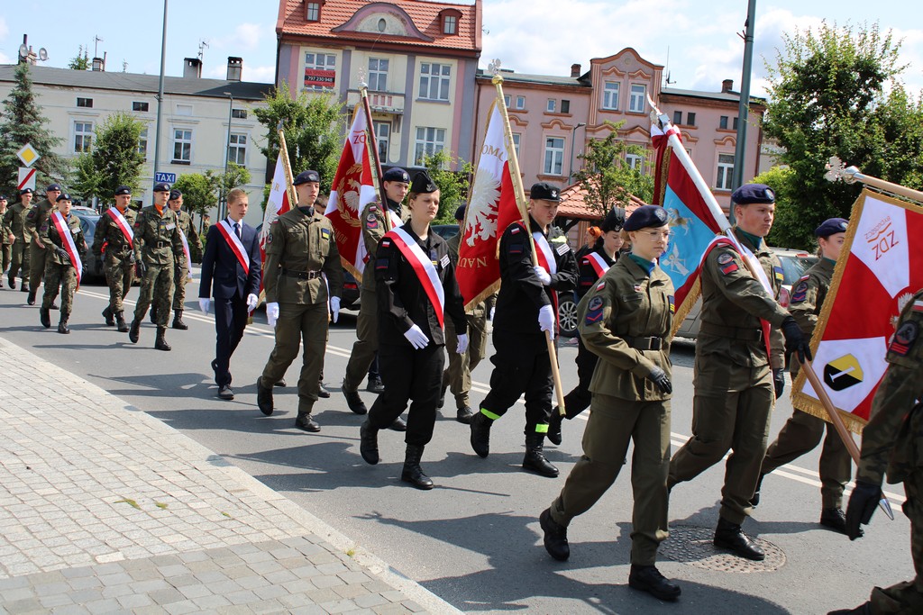 Po mszy świętej w towarzystwie orkiestry wojskowej z Bydgoszczy, licznych pocztów sztandarowych uczniowie przemaszerowali na stadion miejski na dalszy ciąg uroczystości.
