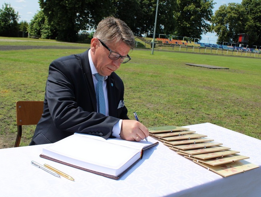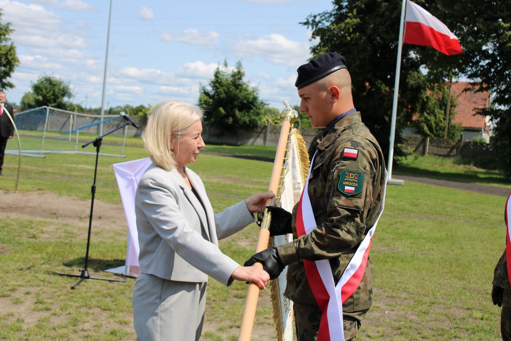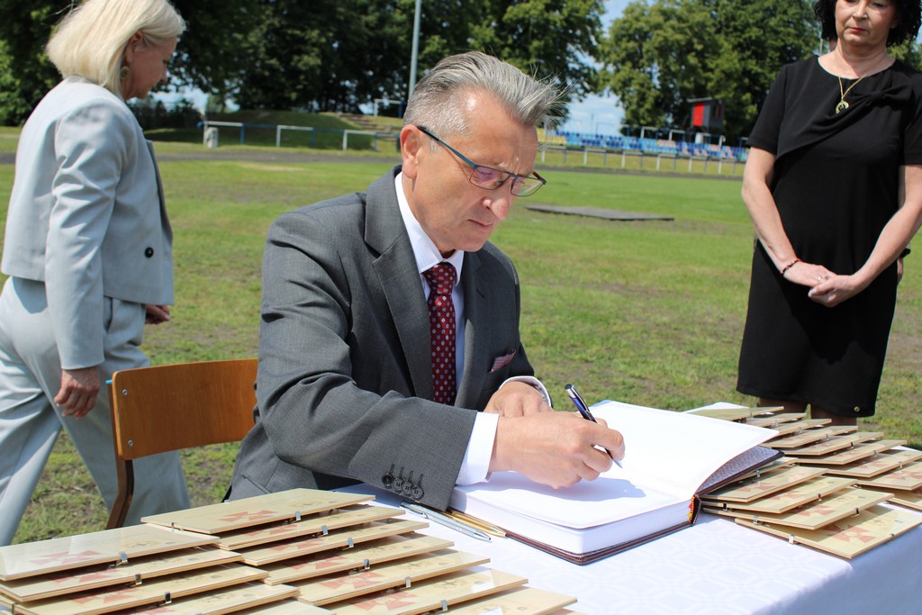 Udział w uroczystości wzięli:  Dyrektor Wydziału Edukacji Ponadpodstawowej, Specjalnej i Placówek Kujawsko – Pomorskiego Kuratorium Oświaty w Bydgoszczy Pani Ewa Podgórska, wicestarosta nakielski Pan Michał Dubkowski, burmistrz Miasta i Gminy Mrocza Pan Jarosław Okonek, członek Zarządu Głównego Towarzystwa Pamięci Powstania Wielkopolskiego 1018-1919 w Poznaniu Pan Piotr Stachecki, Prezes Zarządu Oddziału Kujawsko – Pomorskiego Towarzystwa Pamięci Powstania Wielkopolskiego 1918-1919 w Bydgoszczy Pan dr Sławomir Łaniecki, Prezes Towarzystwa Pamięci Powstania Wielkopolskiego 1918-1919 im. ppor. Franciszka Borzycha w Mroczy Pani Maria Nowacka, przedstawiciele służb mundurowych, dyrektorzy placówek oświatowych i instytucji, poczty sztandarowe, grono pedagogiczne, rodzice, uczniowie.