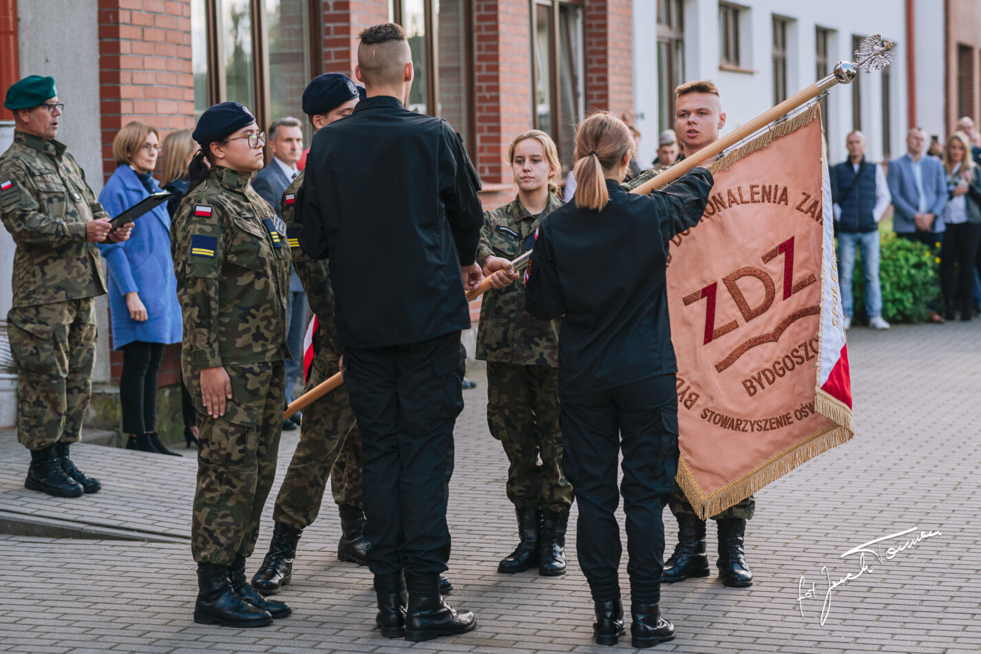 30 września uczniowie klasy I i II Technikum Mundurowego Bydgoskiego Zakładu Doskonalenia Zawodowegow Mroczy, w obecności dyrektor Marii Jolanty Miler, Pawła Duzdowskiego -prezesa BZDZ, pułkownika Krzysztofa Grocha, Waldemara Chudzika – zastępcy burmistrza Miasta i Gminy Mrocza, Jarosława Odrobińskiego – przewodniczącego Rady Miejskiej w Mroczy, Katarzyny Tomasz – opiekuna Samorządu Uczniowskiego TM, wychowawców klas Ewy Tomaszewskiej (1a), Justyny Misterkiewicz (klasa 2a) oraz zgromadzonych gości, złożyli uroczyste ślubowanie.